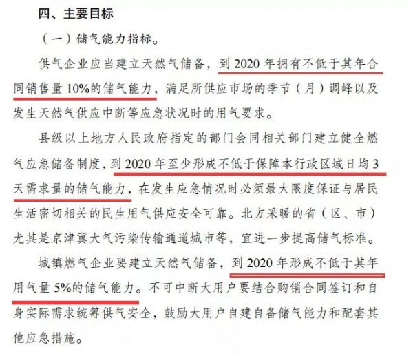 這就意味著,國(guó)內(nèi)必須快速提升現(xiàn)有的“儲(chǔ)氣”能力。而在今年4月,發(fā)改委發(fā)布《關(guān)于加快儲(chǔ)氣設(shè)施建設(shè)和完善儲(chǔ)氣調(diào)峰輔助服務(wù)市場(chǎng)機(jī)制的意見(jiàn)》,要求上游氣源企業(yè)、下游城市燃?xì)夤?,以及地方政府要?020 年前分別按照不低于10%銷(xiāo)量、5%銷(xiāo)量、3天需求量的標(biāo)準(zhǔn)建設(shè)儲(chǔ)氣能力,為滿足儲(chǔ)氣能力建設(shè)要求的項(xiàng)目原則上要于2018 年底之前開(kāi)工。